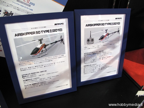Dopo l'annuncio di questa settimana della JR Propo, ecco le prime immagini dallo stand e le fotografie degli elicotteri radiocomandati classe 50 Air Skipper Type 2 e Pro versioni 2010 presentati allo Shizuoka Hobby Show. Tutti e due i modelli sono realizzati per utilizzare motori nitro e sono progettati per il volo acrobatico 3D.