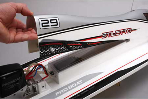 Progettato dal pilota Darin Jordan, la Horizon Hobby (distributore per l'italia dei prodotti Pro Boat) presenta la barca radiocomandata con motore brushless Stiletto 29 Tunnel BND. Il modello viene in versione RTR con lo scafo realizzato in vetroresina della lunghezza di 76,5 centimetri e elettronica già istallata. Lo Stiletto 29 monta un motore brushless da 1800Kv, regolatore di velocità da 60Amp, ricevente Bind-N-Drive e servo per il timone. Per completare il modello avrete bisogno di acquistare separatamente un radiocomando Spektrum e le batterie.