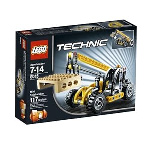 Pick up and lift the pallet using the control knob in back to raise and lower the boom and forks with the LEGO Technic Telehandler. Rebuilds into a motorcycle with side car. Components made in Denmark, Hungary, and the Czech Republic.